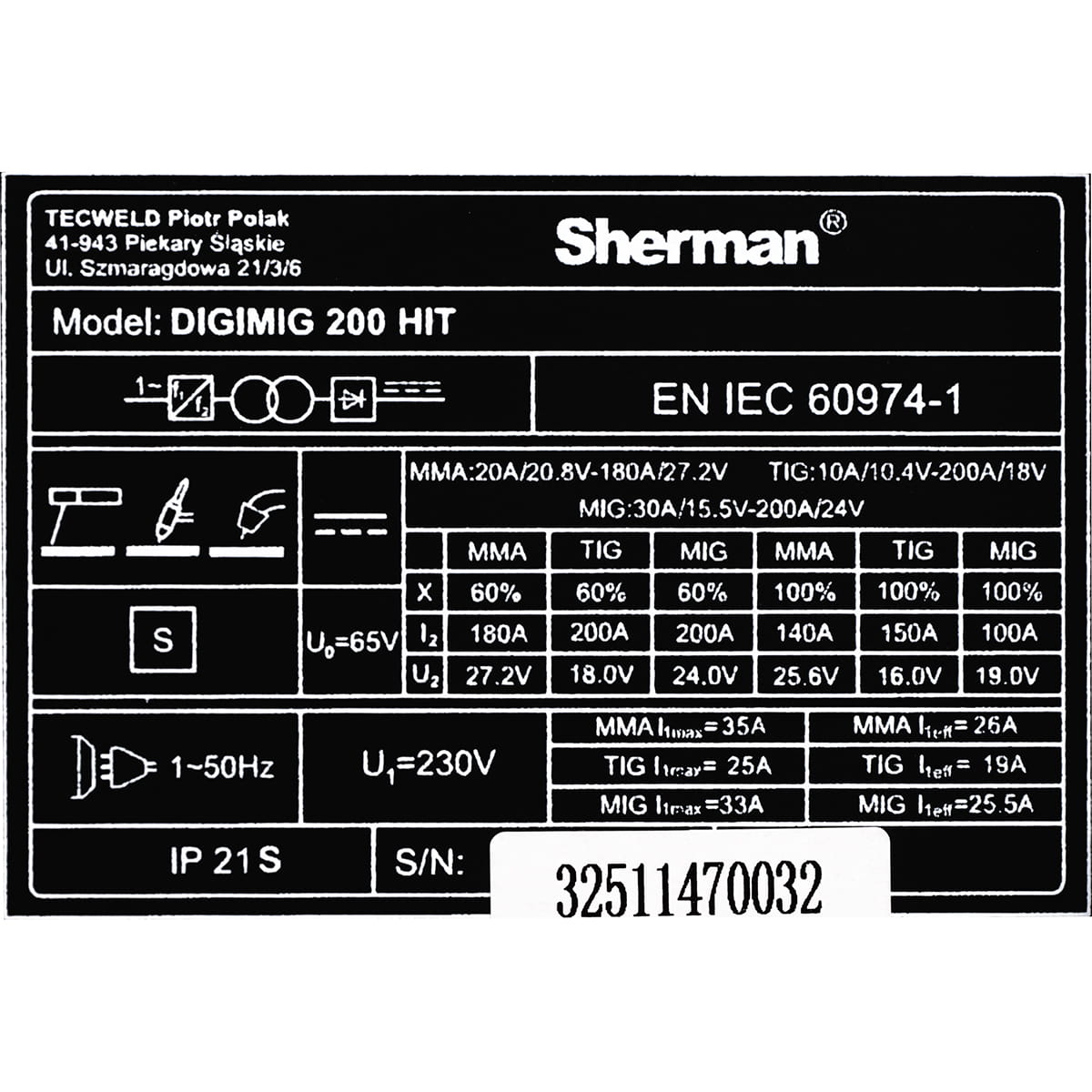 Dane techniczne – Sherman DIGIMIG 200 HIT