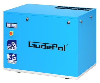Kompresor śrubowy Gudepol SMART-3G 7,5/13 – kompaktowa sprężarka 7,5 kW o wydajności 780 l/min i ciśnieniu 13 bar. Panel L9 z opcją rozbudowy, zaawansowana automatyka, możliwość dodania falownika NX i Internet Chmura LTE/5G, idealna do instalacji wymagających wyższego ciśnienia.
